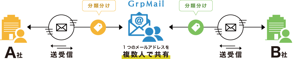 「GrpMail」は、複数人で一つのメールアドレスを共有し、一元的にメール管理を行える革新的なシステムです。