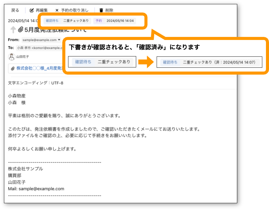 2重チェックの依頼時にも、メールの送信予約ができるようになりました。