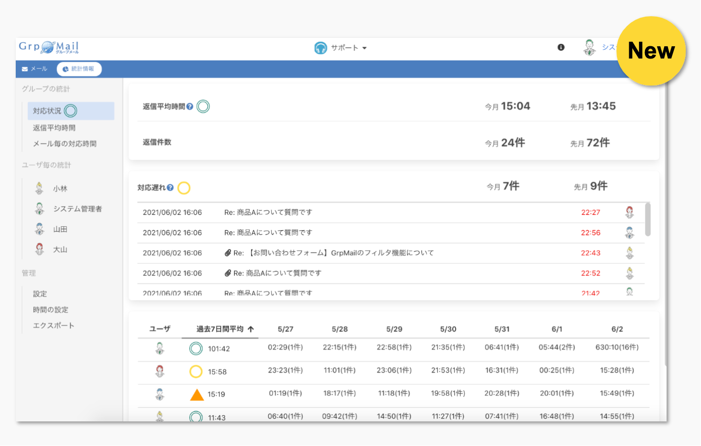 グループ全体の統計情報を1ページで確認することができるようになりました。